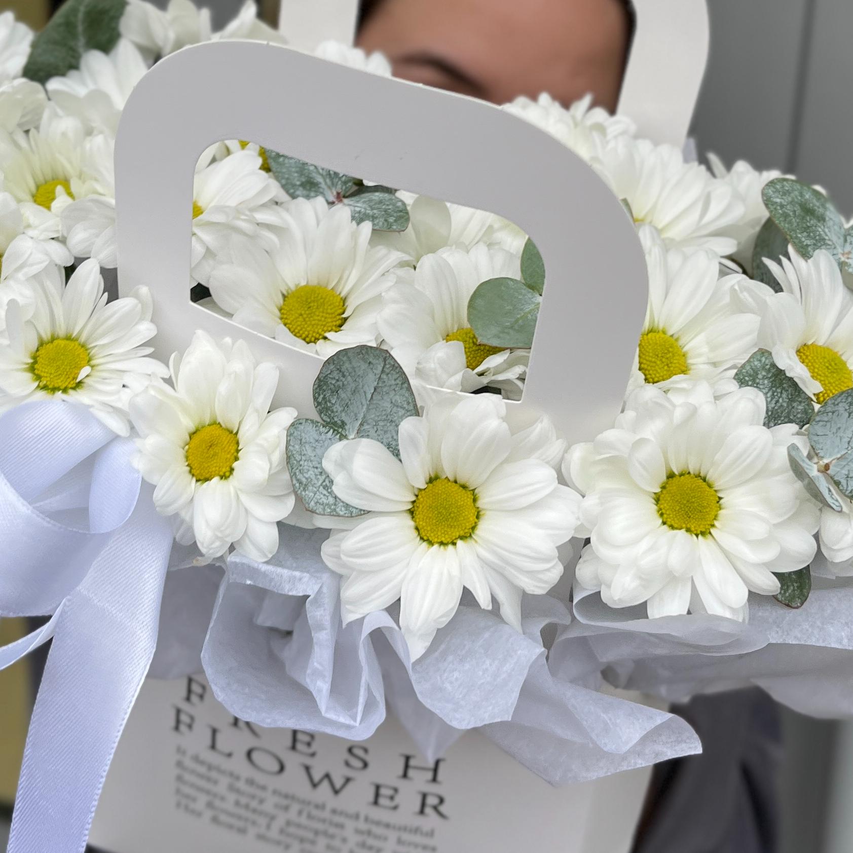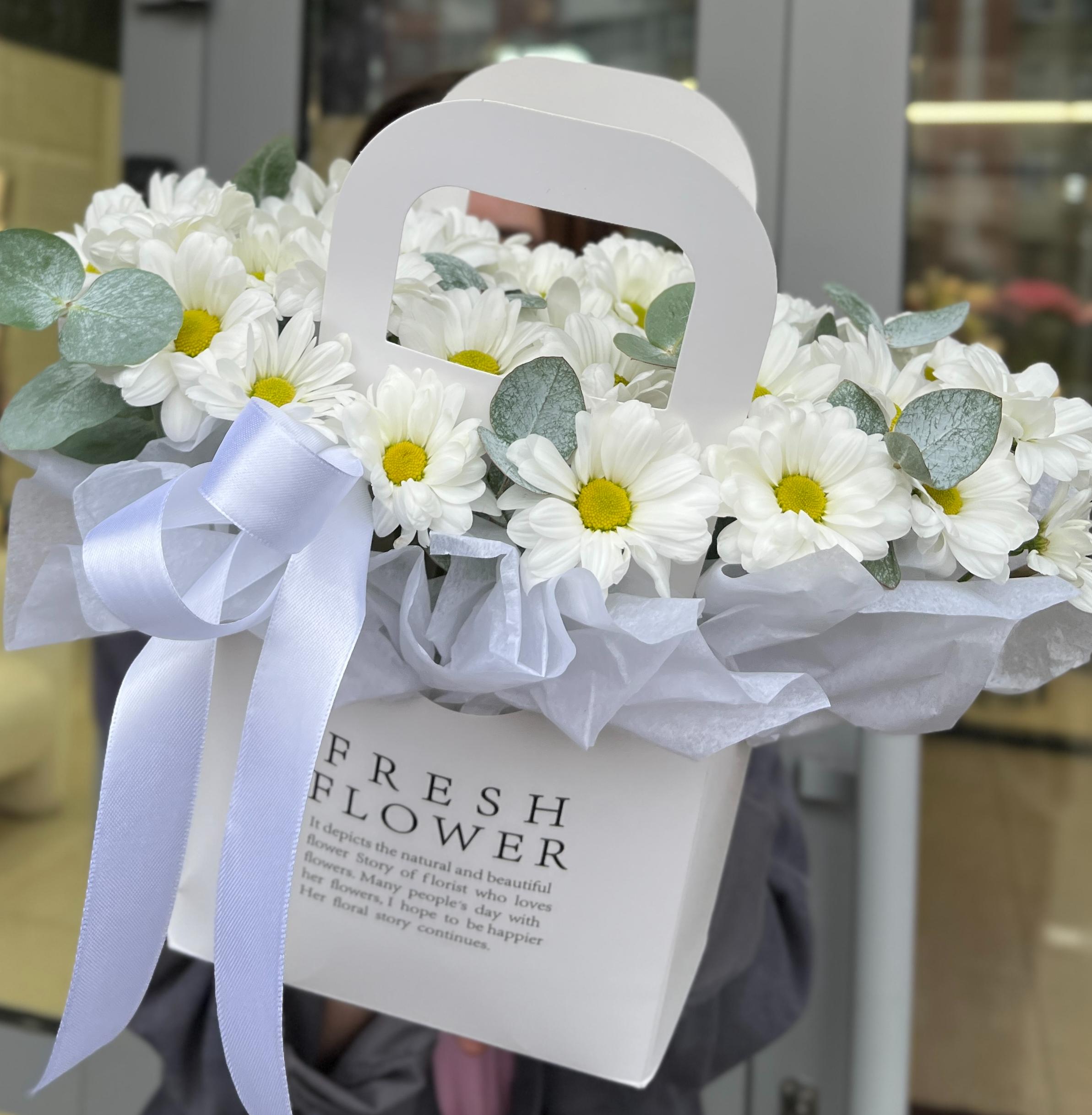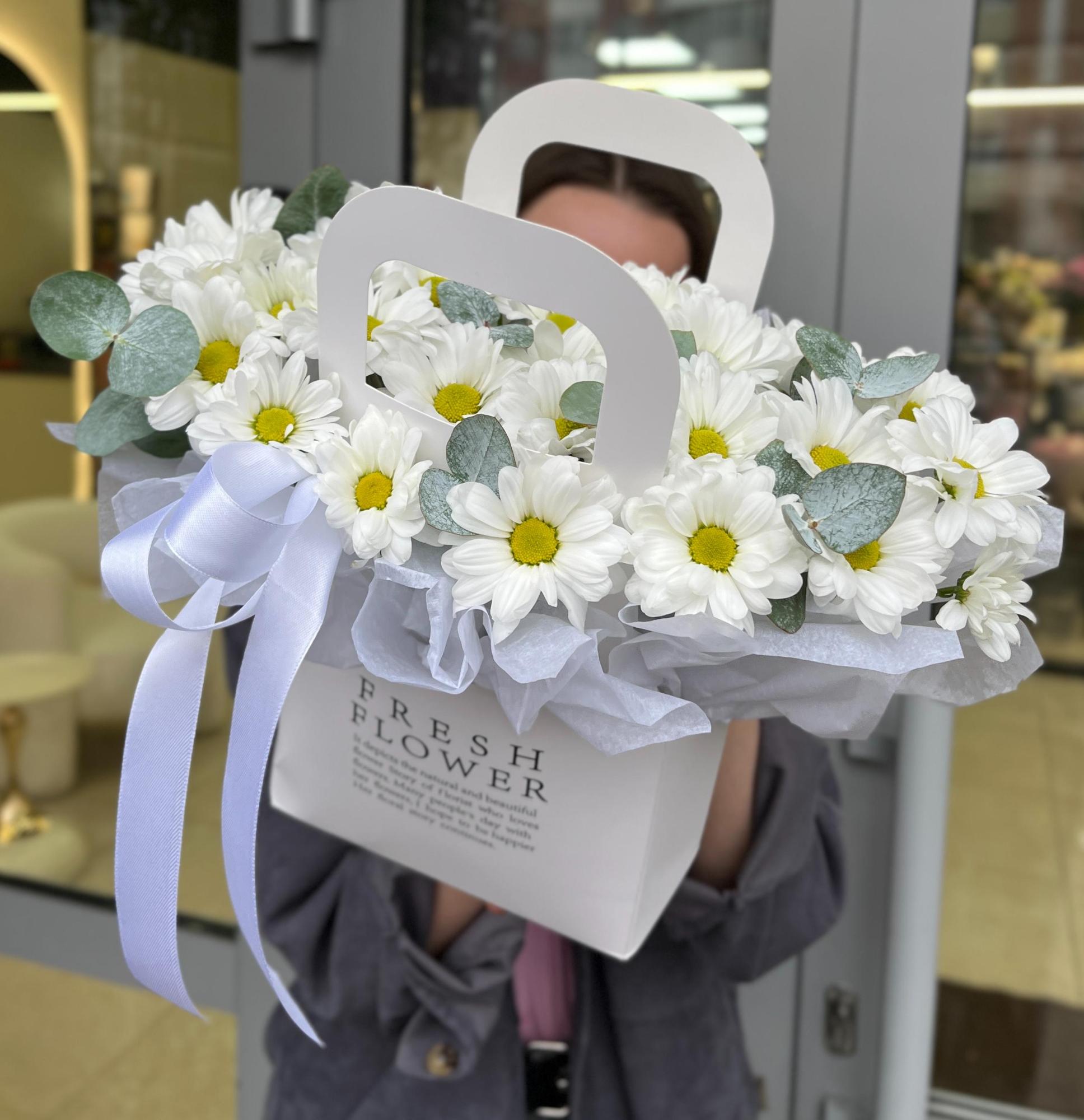 054 Сумочка с хризантемами и эвкалиптом (С)