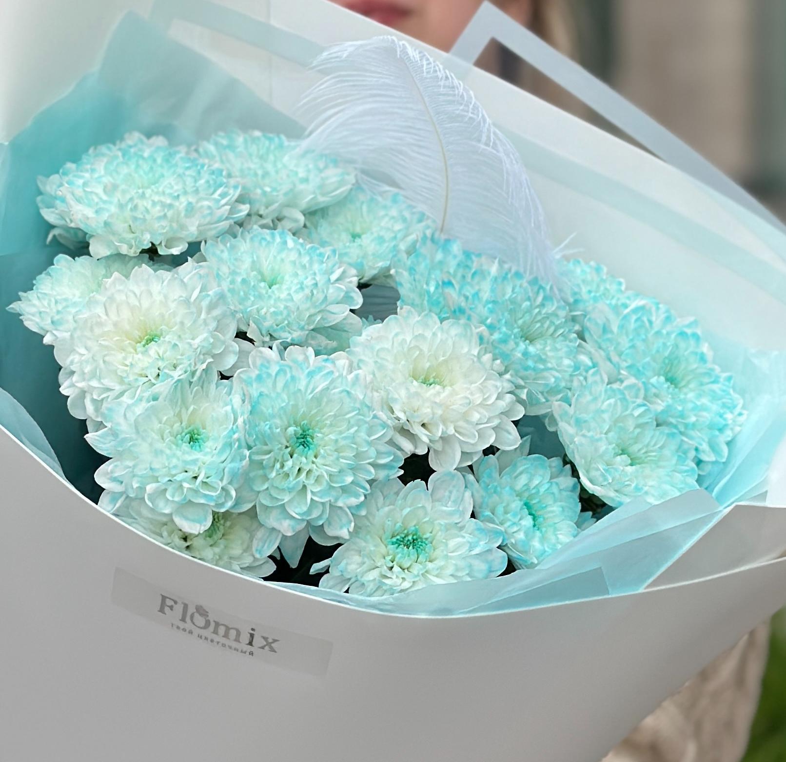 Голубые хризантемы с перышком 028